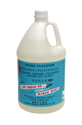 : 快意 101 專洗花崗石、石米、新舊麻石等表面污漬,用後之石質潔淨如新,可用於清洗石碑及地台表面。 包裝 : 1 加侖/樽、20 公升/桶 |
