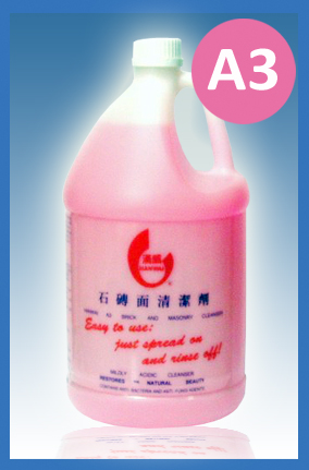 : 漢威 A3 紅水,獨特溫和酸性洗石水,能有效地清洗各種新造或舊有石面污漬,有效清洗英泥灰漬、水印漬,適用於清洗磁磚、抛光磚、石磚等地台及牆壁表面之污漬,使用安全、用後不損石面。 包裝 : 1 加侖/樽、20 公升/桶 |