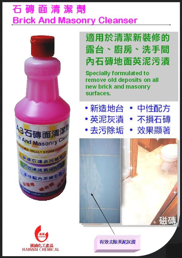 放大獨特溫和潔淨配方,專洗新裝修後石磚面之污漬,有效清洗磁磚、抛光磚、石磚等地台及牆壁表面上之英泥灰漬、水印漬。